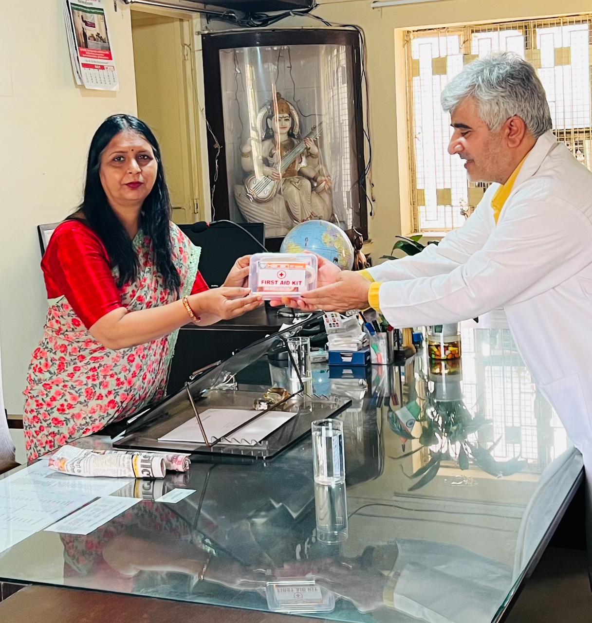 डॉ० बी०पी० त्यागी ने डॉ० विभा चौहान को एक फ्री फर्स्ट ऐड किट भी भेट किया, यह स्कूल यू०पी० का पहला स्कूल होगा जो टेलीमीडिसिन के ज़रिए अपने बच्चों व स्टाफ को स्वास्थ्य सेवाये व बीमारियो से बचने का रास्ता बताएगा, डॉ० बी०पी० त्यागी ने सभी बच्चों, स्टाफ व प्रिंसिपल मैडम का आभार जताया ।