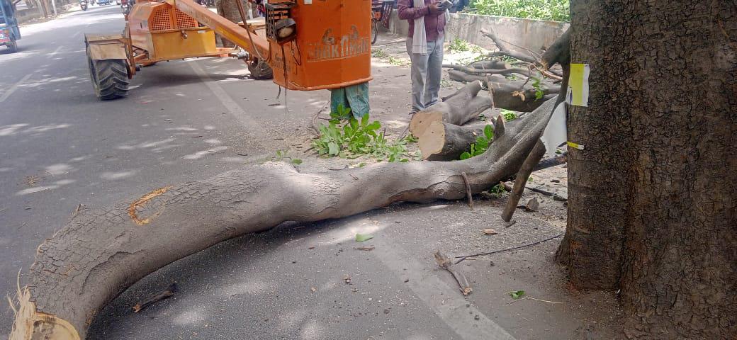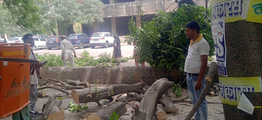 यह फोटो दिन के हैं और आंधी अभी आज आई है आर्टिकल लिखने से कुछ मिनट पहले रात लगभग 10:00 बजे, पेड़ गिरा दिन में या काटा गया कैसे ?