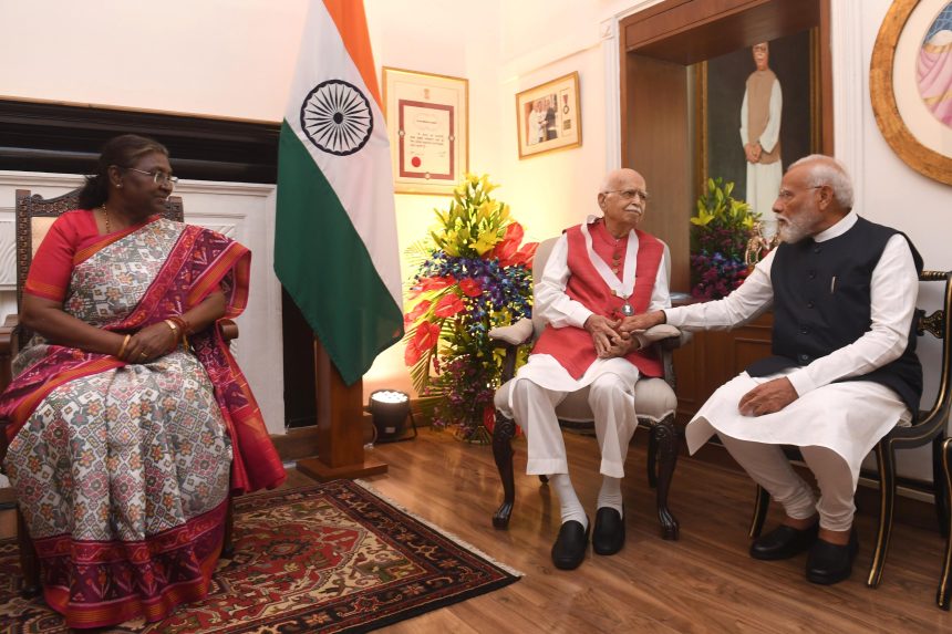 BPC न्यूज़ ब्यूरो- राष्ट्रपति द्रौपदी मुर्मु ने श्री लालकृष्ण आडवाणी को उनके आवास पर भारत रत्न प्रदान किया। इस अवसर पर उपराष्ट्रपति श्री जगदीप धनखड़, प्रधान मंत्री श्री नरेन्द्र मोदी, रक्षा मंत्री श्री राजनाथ सिंह, गृह मंत्री श्री अमित शाह और श्री आडवाणी के परिवार के सदस्य उपस्थित थे।