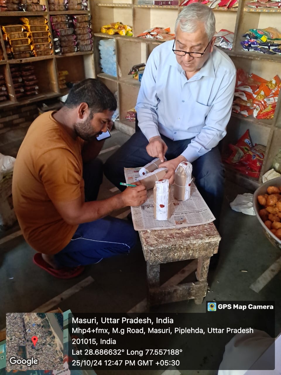 खाद्य कारोबार परिसर मेसर्स मेहताब खोया पनीर भण्डार, एन. के. कालोनी, एन.टी.पी.सी. रोड, मसूरी गाजियाबाद से खाद्य पदार्थ-गुलाब कन्द मिठाई, गुलाब कन्द विनिर्माण में प्रयुक्त कच्चा खाद्य पदार्थ, खोया, पनीर, बूँदी लड्डू एवं बर्फी के नमूनें लिये गये एवं खाद्य परिसर मेसर्स श्याम ट्रेडर्स, जी-04, अशोक नगर, गाजियाबाद से खाद्य पदार्थ घी-04 एवं एस.एम.पी.-02 के नमूनें लिये गये,