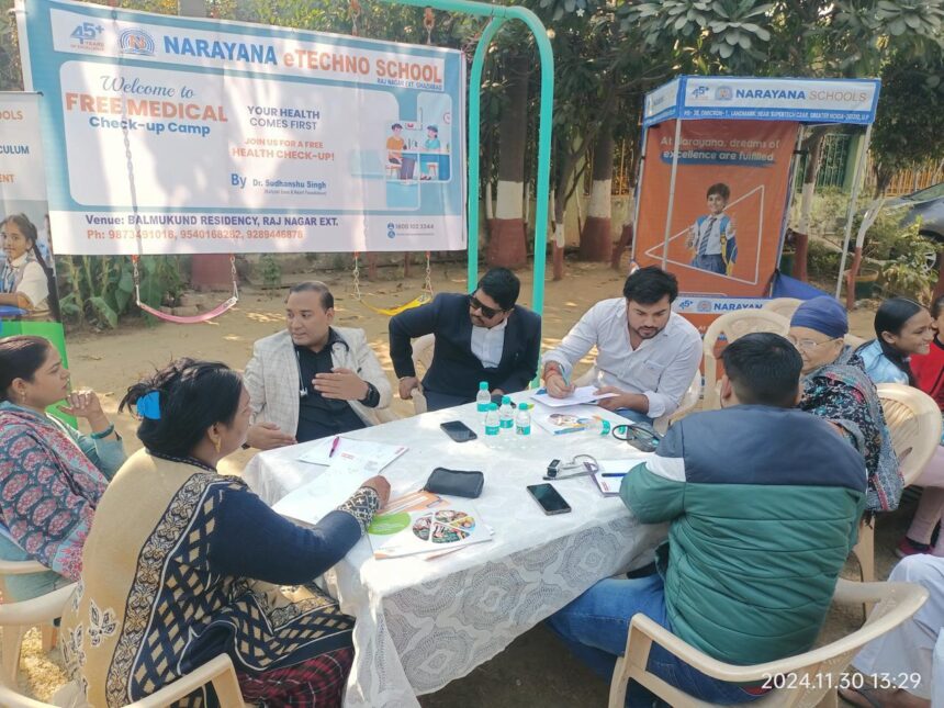 नारायणा ई-टेक्नो स्कूल गाज़ियाबाद द्वारा बाल्मुकुंद सोसायटी में निशुल्क स्वास्थ्य शिविर का आयोजन